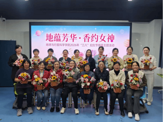 为庆祝第 116 个 “三八” 国际劳动妇女节,切实关怀学院女教职工,丰富其精神文化生活,3 月 12 日下午,地球与行星科学学院分工会精心策划的 “地蕴芳华香约女神 插花主题活动在主楼 618 教室温情启幕。学院女教职工齐聚一堂,共赴这场与花草相伴的美好之约。